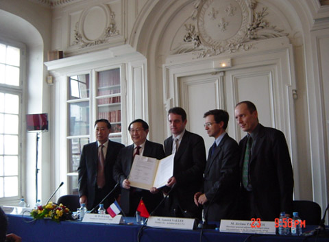 3月23日,应法国教育部邀请,我教育部章新胜副部长率领中方联合体高校34人代表团赴法国巴黎参加了中法博士生学院成立大会,法方联合体高校代表30余人同时出席。在中法博士生学院成立大会上,法国教育部Gilles de Robien部长、我教育部章新胜副部长与我驻法赵进军大使分别致辞祝贺。我教育部国际合作与交流司曹国兴司长、我校万钢校长、法国大学校长联合会Yannick Vallée第一副主席与法国外交部国际合作与发展Jérome Pasquier副总司长先后发言并共同签署了中法博士生学院章程。成立大会结束后,万钢校长还与中法博士生学院中法指导委员会其他9名成员(中方5名、法方5名)共同探讨了中法博士生学院招生程序、优先合作领域和第一批学生入学时间等重要议题。