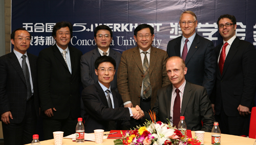 4月13日,加拿大蒙特利尔市市长特伦布莱(Gérald Tremblay)先生率代表团一行10人来访我校。我校校长万钢,杨浦区区长蒋卓庆、副区长徐权等与蒙特利尔市市长一行进行了亲切友好的会谈。万刚校长首先向来宾介绍了同济大学的发展历史、学科特点和对外交流合作等情况,随后,我校建筑城规学院院长吴志强向客人介绍了该学院的发展状况和对外交流情况。特伦布莱市长对同济大学的热情接待表示感谢,并介绍了蒙特利尔市作为知识型城市的特点,同时期望双方能在城市发展和规划等方面开展全方位的合作。