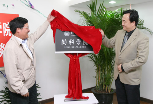 由同济大学与上海同济科技实业股份有限公司合作创办、四年制本科层次的独立学院——“同济大学同科学院”,5月18日下午在同济大学沪北校区揭牌成立,今年计划在沪二本招生297名。上海市教委副秘书长蒋红、我校党委书记周家伦到会致辞并共同为同科学院揭牌,闸北区副区长韩晓玉、我校副校长陈小龙也在会上分别致辞。揭牌仪式结束后,校领导与市教委相关职能部门负责人还就同科学院的实际运作和今后发展进行座谈研讨。