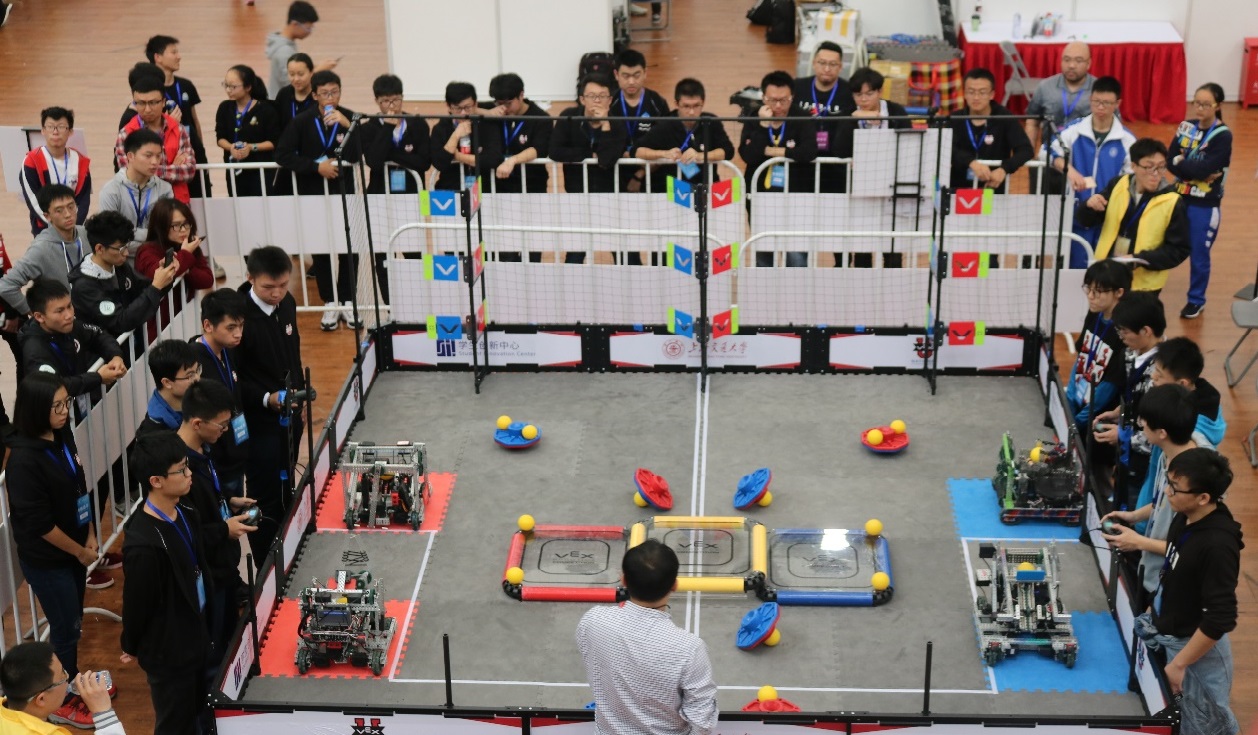 11月2日,由上海交通大学主办、上海市教育委员会支持的2018中国VEX机器人大赛暨VEX世锦赛中国选拔赛在上海交通大学举行。由电子与信息工程学院余有灵老师、周伟老师指导的两支队伍,在比赛中获得了赛事最高奖项——全能总冠军,以及单项奖中的活力奖和VEX机器人技能赛亚军。