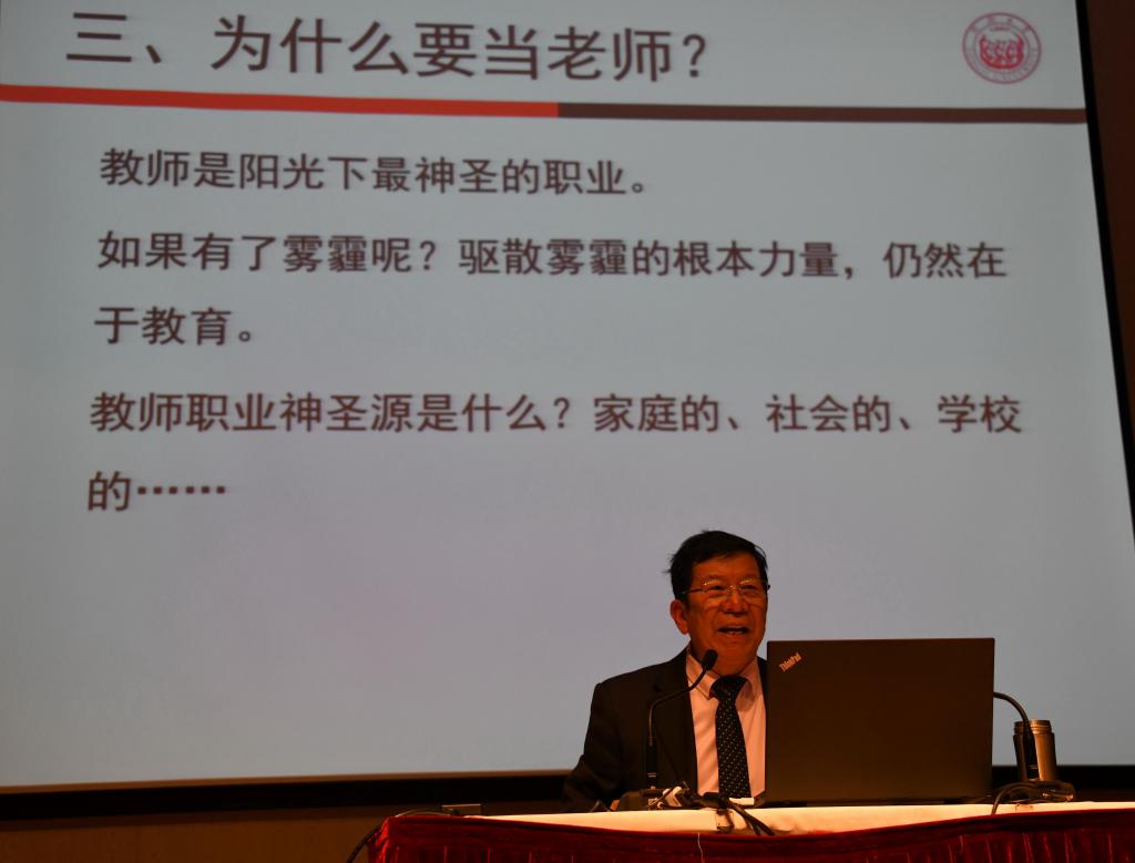 “我们教师能从这个职业中获得多大的自豪感、多大的成就感啊,我确实很享受教书这个职业,我可能是最适合教书的。假若有来世,我还想当老师。”11月13日,作为同济大学师德师风全员培训集中授课的第二讲,同时也作为同济大学新教师岗前培训的必修课程,我校马克思主义学院思政名师李占才教授以“以爱塑爱、以心育心”为题,分享他一辈子教书育人的体会,一句句掷地有声、情真意切的话语,道出了他炽热的为师情怀及其为师之道。