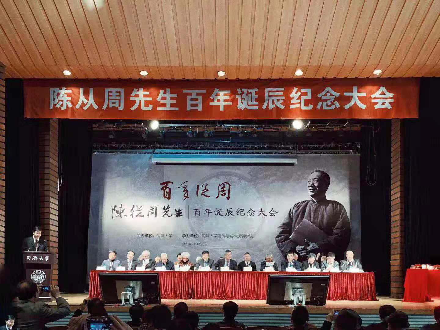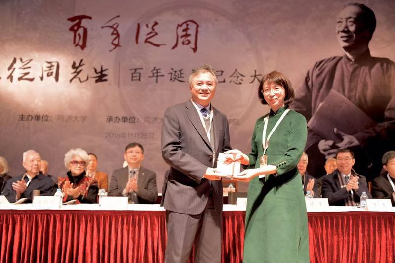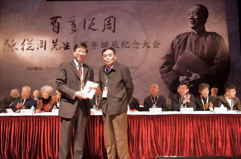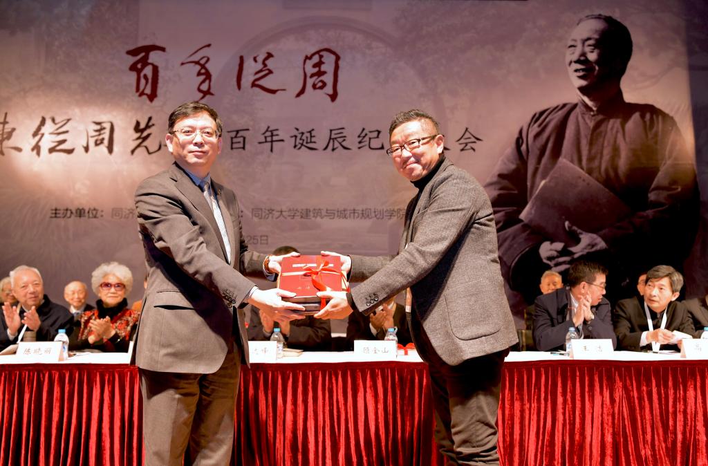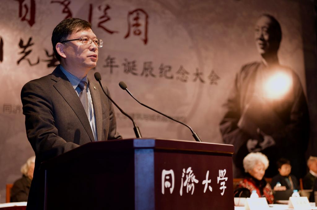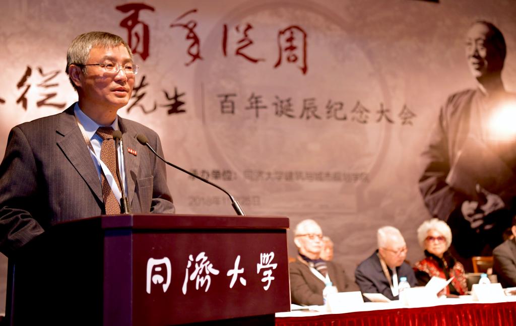 当天,陈从周先生百年诞辰纪念大会在同济大学一·二九礼堂举行,全国人大常委会副委员长、民进中央主席蔡达峰,上海市政府副秘书长顾金山,同济大学党委书记方守恩,九三学社上海市副主委、同济大学主委、同济大学副校长、中国科学院院士陈义汉,同济大学建筑与城市规划学院教授、中国科学院院士郑时龄、常青,同济大学原校长高廷耀、原副校长黄鼎业、原党委副书记姜富明,中国风景园林学会理事长陈重,中国风景园林学会原理事长陈晓丽,上海市风景园林学会理事长周如雯,南京林业大学校长王浩,华中农业大学党委书记高翅,北京林业大学副校长李雄,上海戏剧学院院长黄昌勇,陈从周先生的长女陈胜吾,来自我国风景园林行业代表,北京林业大学、重庆大学、东南大学、上海交通大学、天津大学、浙江农林大学等兄弟学院的院长、系主任和知名教授,陈从周先生园林及思想的研究学者,陈从周先生的家属、亲友、故旧,以及来自苏州园林局、扬州园林局、南北湖管委会及陈从周艺术馆、楠园、豫园、水绘园、徐志摩纪念馆的代表,以及我校建筑与城市规划学院师生代表等500余人出席纪念大会。建筑与城市规划学院党委书记彭震伟主持纪念大会,建筑与城市规划学院院长李振宇介绍陈从周先生的生平事迹。