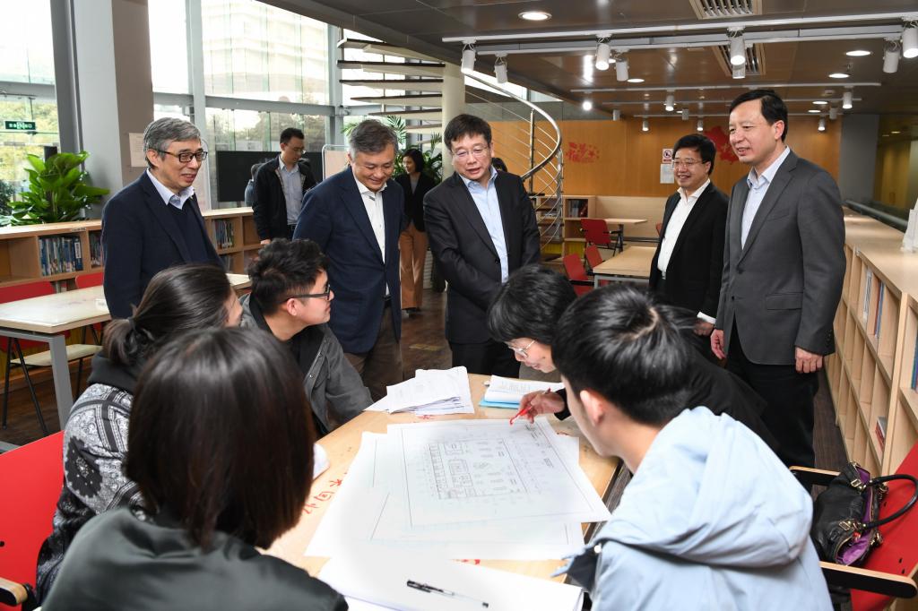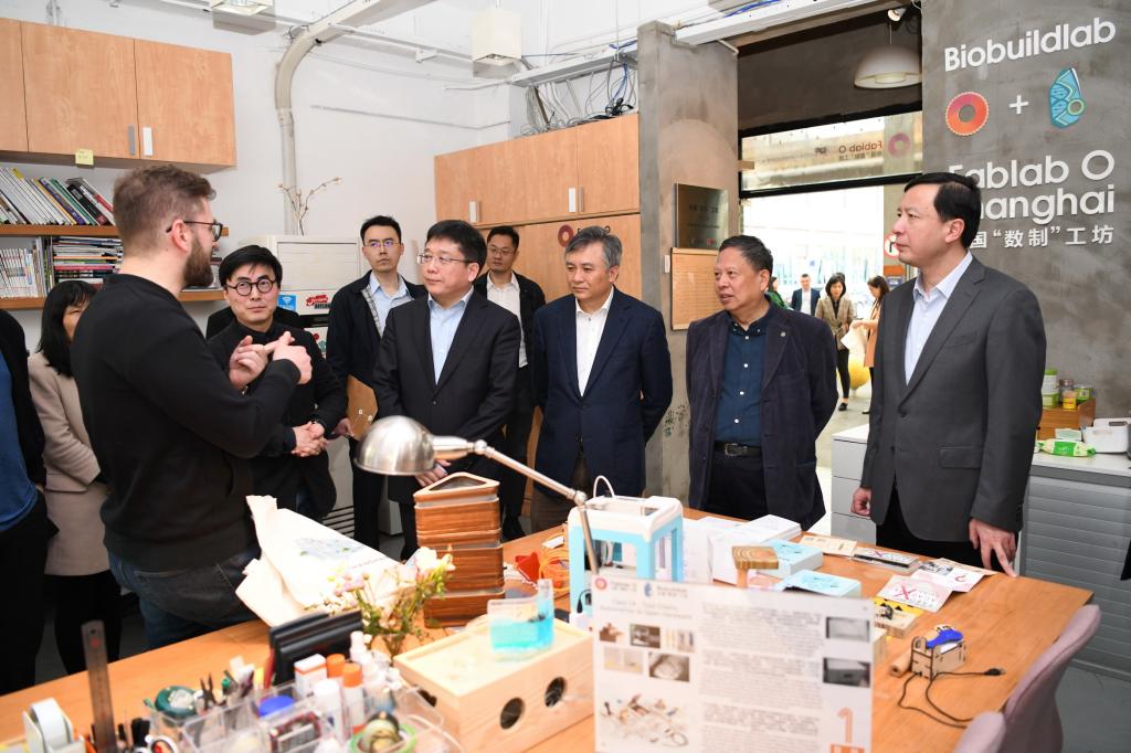 陈群一行首先来到设计创意学院,听取学院院长娄永琪关于推进一流学科建设的情况介绍,参观了国内首家全球认证的Fablab“数制”工坊、我校与美国麻省理工学院共建的上海城市科学实验室,并与外籍专家交流。随后,陈群一行来到土木工程学院,听取学院院长赵宪忠关于推进一流学科建设以及依托一流学科培养高水平人才的情况介绍,参观了院史馆、大学生创新实践基地及学生科创作品,并与师生交流。陈群一行最后来到学校综合服务大厅,了解这一面向全校师生的综合性行政服务平台的日常运作情况。