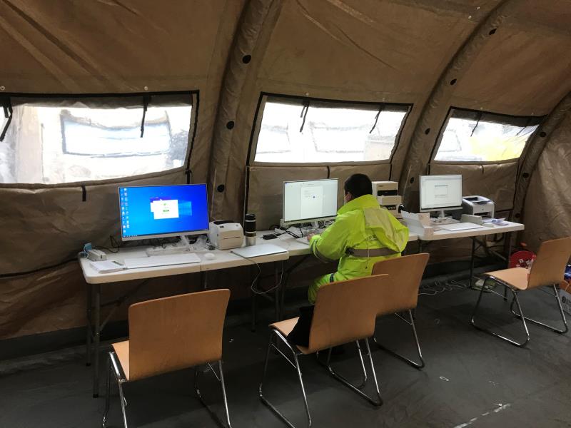2月4日,应急医疗队带着这套移动信息系统从上海出发驰援武汉。抵达武汉后,两名由信息中心派出的队员迅速在前方展开工作,在帐篷移动医院内完成了网络、电脑、打印机安装配置及软件系统的调试,并组织医生护士对系统进行全流程模拟测试。很快,一套集门诊、住院为一体的医院信息系统在武汉帐篷移动医院落地,初步配置的系统工作站15个。该系统随时可为武汉客厅“方舱”医院提供支持,一旦“方舱”医院需要调用,这套移动信息系统能够第一时间响应,通过信息优化降低医务人员的劳动强度,实现“无纸化”医疗。