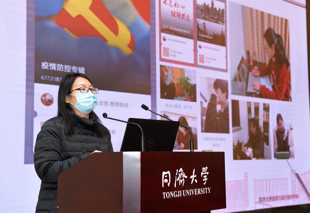 建筑与城市规划学院党委副书记王晓庆以“巾帼争先,协力抗‘疫’”为题,分享了获评2019年度“上海市巾帼文明岗”的学院学生工作办公室如何对标争先创特色、为高校思政战线增彩的创新实践,以及疫情发生以来,携手学子共同战“疫”聚能量的防控工作开展情况。