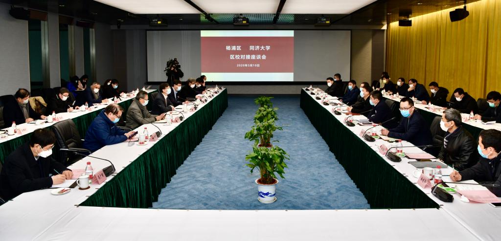 薛侃介绍了杨浦区疫情防控工作和复工复产工作。陈杰介绍了同济大学疫情防控工作,2019年工作成效以及对区校未来合作的展望。他表示,面向未来,学校提出以人工智能赋能,将环同济知识经济圈打造成为推动“知识杨浦”迈向“智能杨浦”的新引擎,走向校区、园区、社区更高品质的“三区联动”,实现环同济知识经济圈进一步转型升级。