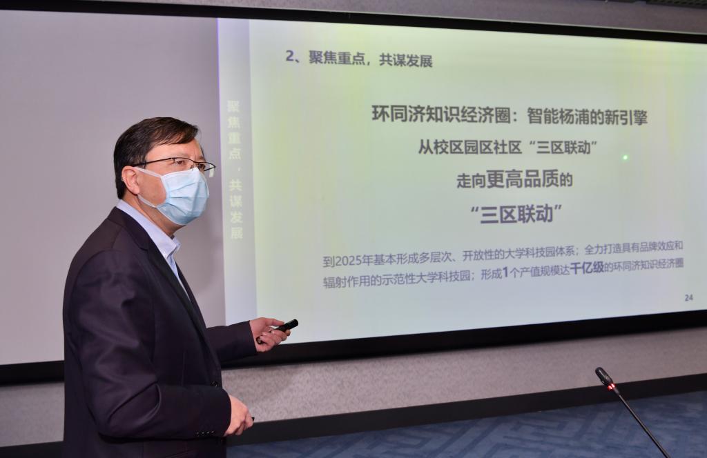 方守恩表示,当前,同济大学正一手抓疫情防控,一手抓教学科研工作逐步恢复,对学校今后一段时间的疫情防控工作制定了严密的预案。学校要进一步强化与杨浦区的联防联控,共同织密群防群治“一张网”,配合杨浦区履行好属地责任,保护好师生及所在区域的居民的安全和健康。要进一步深化产教融合,全力打造环同济知识经济圈升级版,一方面抓内涵提升,一方面抓空间拓展。区校双方要通过机制创新,实现更加紧密的联动合作,同频共振、共同发展。要进一步深化区域化党建内涵,深化区校合作,创新基层治理的新模式、提升新活力,共同谋划面向未来的智能城市发展与治理。同时,校区、园区、社区要进一步开放融合,共同营造创新生态,提升和共享城市的品质。