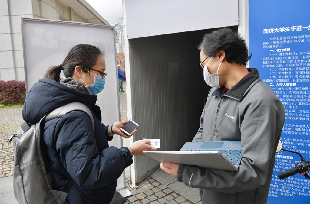 出示手机上的“随申码·健康”绿码,经我校研发的疫情防控智能识别系统自动测温、智能识别,刷校园一卡通进校,在行政楼内作登记……自4月1日起,学校机关部处全体教职工(除身在湖北的部分教职工外)返校返岗,恢复上下班制度。