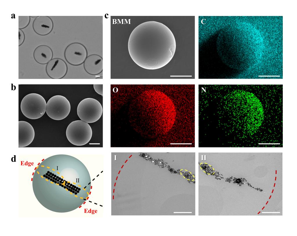 自然界中的趋磁细菌是一类受磁场控制的具有集群行为的天然微机器人,其内部含有磁小体作为驱动和控制单元,能以高度有序的集群方式进行聚集和迁移。受此启发,研究团队研发了一类具有集群行为、模仿趋磁菌内部磁小体有序结构的微型机器人,其材料成份、接触界面和控制方式都具有良好的生物相容性。通过实验方式和数值模拟解析了机器人内部驱动结构、磁场强度及频率对其运动能力的影响,结果显示,其最高运动速度可达161.7微米每秒。在接收到磁场群体性控制命令后,负载溶栓剂的微型机器人可聚集在血栓部位,在高频磁场控制下释放溶栓药物,进行微血管溶栓。