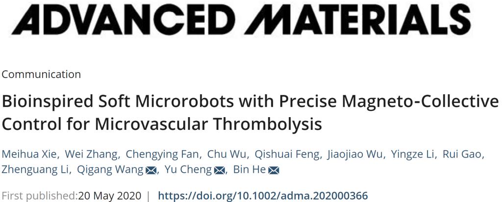 这是一种体积微小、载有溶栓剂药物的仿生手术机器人,在外加磁场的指挥下,聚集在血栓部位,产生热和力场,成为高效的微血管血栓清道夫。它由同济大学牵头建设的上海自主智能无人系统科学中心微纳无人系统研究团队经医工理深度融合、联合攻关研发而成,可用于医疗靶向微血管溶栓。这一研究成果5月20日23时许(德国时间)在线发表于国际著名学术期刊《先进材料》(Advanced Materials)。