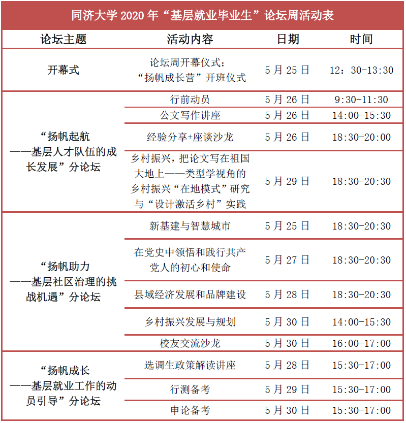 “家国正年华,扬帆奋斗时”,同济大学2020年“基层就业毕业生”论坛周开幕
