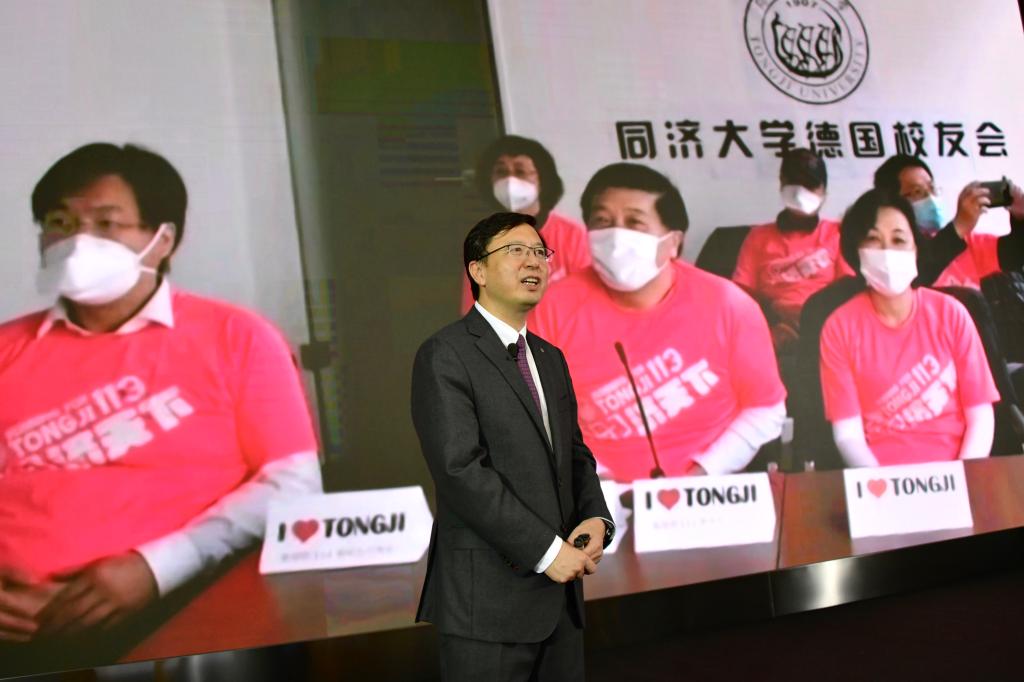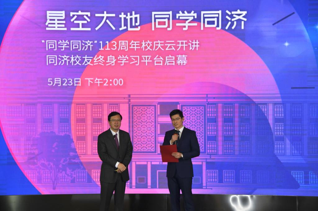 接下来,陈杰同全体校友一道共同畅想未来。他表示,如今面对多变的时代,面对种种挑战,同济人更要发挥同舟共济的精神,以学习充实自我、追求卓越,向世界一流大学的建设目标奋勇前行。校友终身学习平台的建立,顺应了时代趋势,是又一项满足校友需求的切实服务。在同济大学建校113周年之际,开启校友终身学习平台,也是对同济人共同愿景最好的诠释。他号召全球校友和母校一起,仰望星空、脚踏实地、不断学习、砥砺前行。