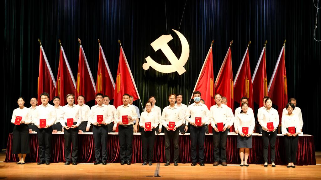交流发言后,由方守恩、杨正宏、惠蔚集体领誓,全体与会人员面向党旗,重温入党誓词。