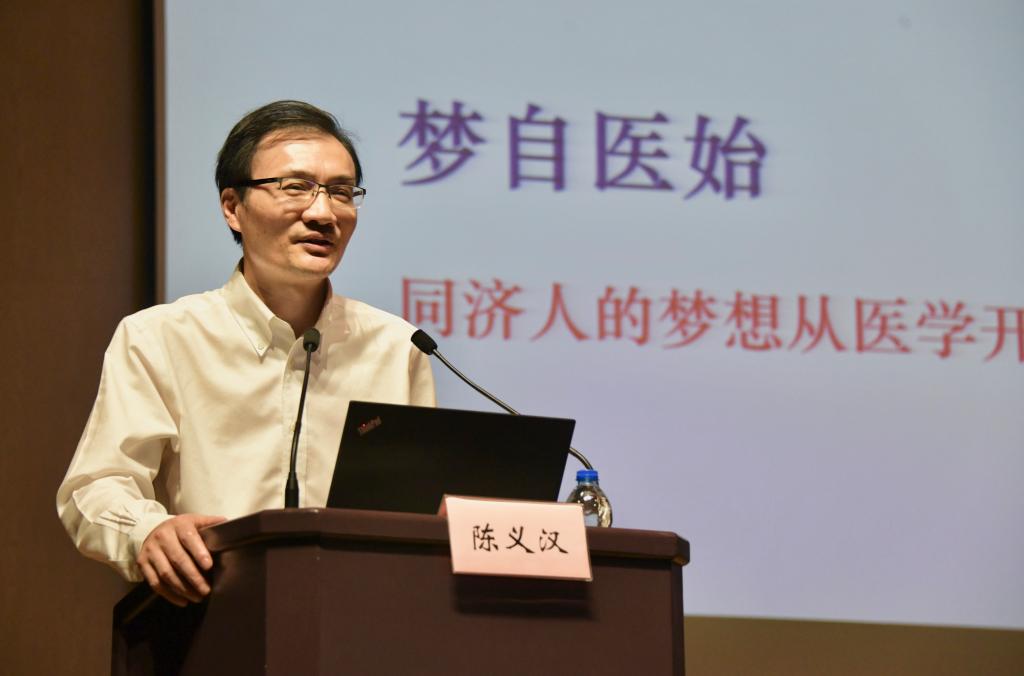 陈义汉以《推进医口建设》为题,回溯了同济医科的发展历程,介绍了同济医科的发展现状,分别讲述了一位主治医师、主任医师、医学教授的24小时,并提出了对学校医科发展战略的思考和重点工作。