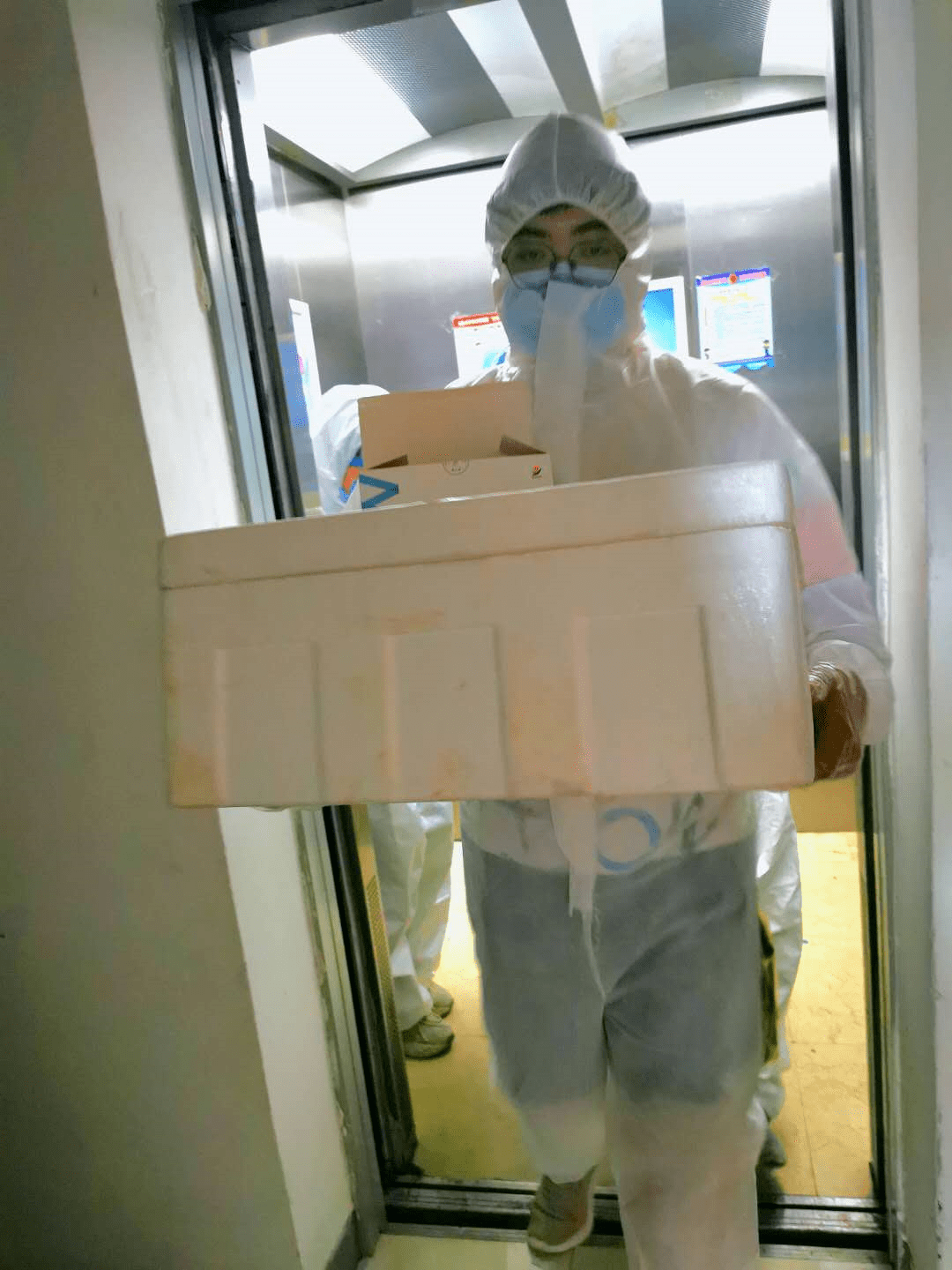 七月的酷暑让防疫坚守战变得更加困难,设施消毒、人员管控、体温监测,这些工作都需要人手。物资运输——这项最为简单又繁重的体力作业,却是保证一切防疫工作有序进行的根本,它关系着社区两千人的生活保障。他每天负责小区近30户居民的物资配送工作,仅蔬菜平均每天就要送200公斤左右。清点、核查、配送……吴树桐本着对居民们最大的负责精神,认真处理中间的每一个环节。