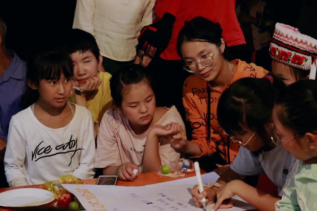 展演过后,一场晚间茶话会——“家园宝藏我守护”工作坊热闹地展开了。美丽乡愁的志愿者通过引导村民讨论公共议题,拉近彼此间的距离,达成诺邓文化传承发展的基本共识。