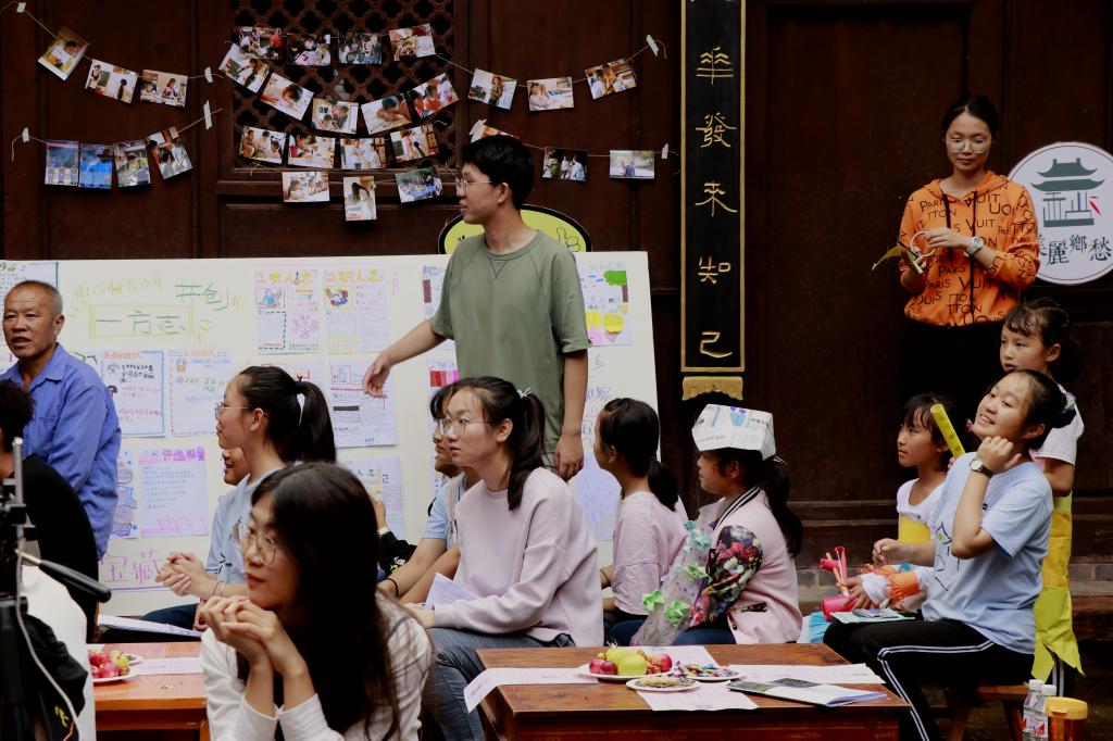 创变营课程期间,古村儿童在美丽乡愁引导员的带领下,访谈诺邓劳动者的人生经历,探索老物件沉淀的历史与故事,观察公共空间里居民的交往与活动。在挖掘完宝藏的丰富意蕴后,他们以多元的形式展示宝藏故事。院落展板上儿童共创的《诺邓家园宝藏一方志》、活动现场的精彩表演,彰显着古村青少年的无限创意。