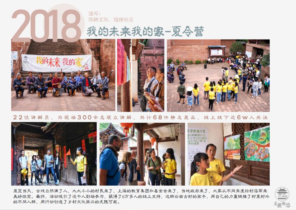 2018年,团队探索儿童撬动乡村公共事件、促进村落文化振兴的新模式,成功举办由儿童自主策展组织的“我的未来我的家”诺邓文化展览;2019年,团队为复兴诺邓传统市集,编写《诺邓家园一方志(创刊号)·盐马市集》,同时创立“一诺千集”诺邓文化创意市集品牌,邀请村民下山摆摊,通过社区集市的方式,打造诺邓特色品牌。