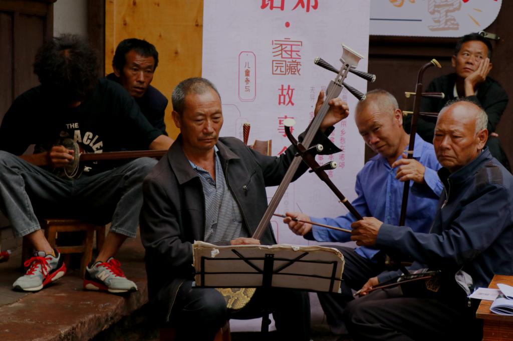 戏剧《三崇记》以村民齐心重绘三崇庙佛像的故事为原型,通过孩子们生动的表演,传递着这方土地上村民对公共事务的热情与关切。值得一提的是,往年“诺邓新节日”的老朋友——洞经古乐乐队,在今年首次尝试了分段演奏,为儿童戏剧倾情配乐,两代人一起演出,预示着文化传承的接力。