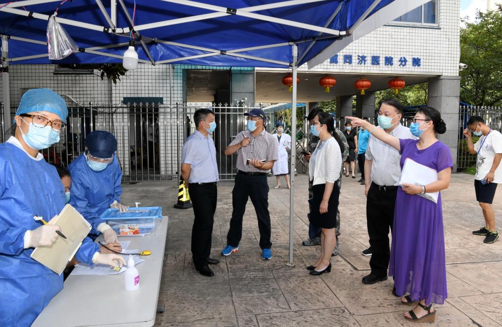 我校将于9月6日至7日迎来2020级新生报到入学,其他年级学生将于9月12日至13日返校报到。为进一步做好新学期开学疫情常态化防控工作,9月1日,我校在四平路校区学生社区、校医院、临时留观点等处举行学生返校疫情防控应急演练。校党委副书记徐建平现场指导应急演练工作。学校党办、校办、宣传部、学研工部、保卫处、后勤集团、校医院等部门有关负责人观摩了演练。