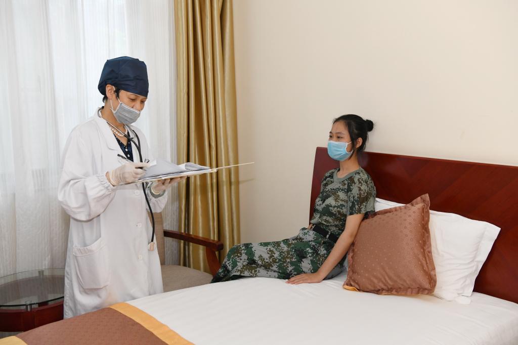 在医护人员带领下,这名学生来到设在干训楼的临时留观点。学生进行信息登记,服务员为学生测量体温,发放房卡,将其带到留观的房间。医护人员对学生再次强调留观期间的注意事项。辅导员对该学生情况进行全程跟踪,掌握详情,并对学生进行心理抚慰。