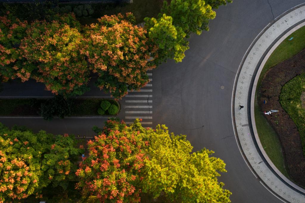 一天天时光匆匆,夏日暑热早已退场,校园里秋意渐浓。秋风送爽,秋阳温煦,观校园处处,层林尽染。俯瞰远眺,眼前宛如一幅幅色彩斑斓、美不胜收的绚丽油画。