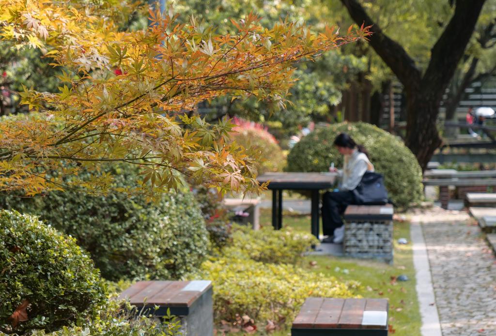金黄的树叶、饱满的果实,诉说着收获的喜悦。同济园里,秋光明净,天空澄碧,秋日胜春朝。趁着这大好时节,饱览一番迷人的秋色秋景,在秋意浓郁的校园里静心读书。