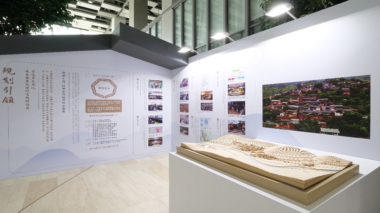 展览以静态图文、动态视频、实体模型等形式,多维、立体、全景式地回顾了同济大学自2012年起,秉持“与祖国同行,以科教济世”的初心,依托自身学科和人才优势,在规划编制、教育扶智、人才支撑、永安示范、产业支持、志愿服务等方面精准施策,全面助力大理州云龙县打赢脱贫攻坚战的八年奋斗历程,再现了同济人扎根云龙、全情投入,无私奉献的鲜活扶贫故事,展示了云龙县独特的历史文化、风土人情,还精心准备了在《舌尖上的中国》出镜过的云龙独有美味,为观众呈现了一场集视觉、听觉、味觉于一体的三重感官盛宴。