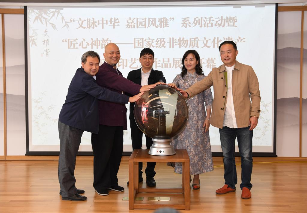 由国家级非物质文化遗产代表性项目代表性传承人、杭州十竹斋艺术馆馆长魏立中倾力打造的“匠心神韵——国家级非物质文化遗产木版水印艺术作品展” 在文榷堂揭幕,共展出了《廿四节气》《四美图》《一团和气图》等98件重要木版水印作品,以及120余件雕版和文献资料。展览同时发布了魏立中为我校定制的《同舟共济》《自强不息》《继往开来》3幅版画,以及《仰望星空》《学海泛舟》《开卷有益》《继往开来》《礼堂济忆》《同嘉石刻》6张藏书票。