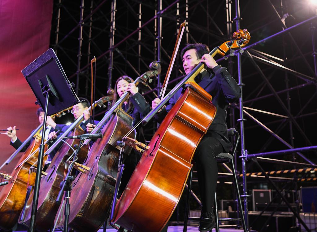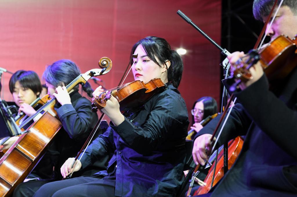 11月3日,“红旗颂”露天交响音乐会在嘉定校区上演。著名指挥家赵晓鸥执棒上海爱乐乐团,在嘉定校区人工球场为师生献演了一场红色经典交响音乐会。本场音乐会是同济大学2020年艺术节和“理想之光·真理之路”同济大学迎接中国共产党建党100周年系列主题活动的组成部分。校党委副书记吴广明和两千余名师生现场观摩了演出。