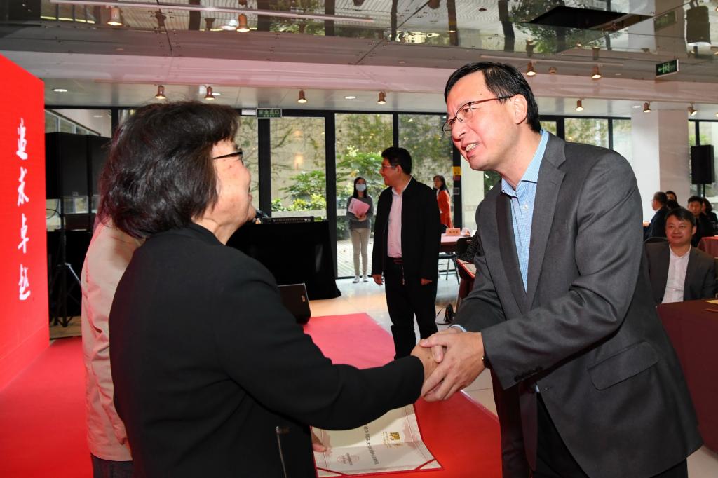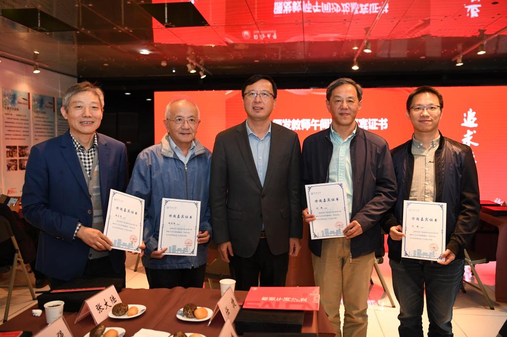 8年间曾受邀在午间沙龙担任主讲者的数十名教师,还获“特邀嘉宾”证书。陈杰走到这些教师中间,为他们一一颁发证书,感谢他们传授、分享教学和科研经验,并与他们亲切交谈。现场洋溢着欢快愉悦的氛围。