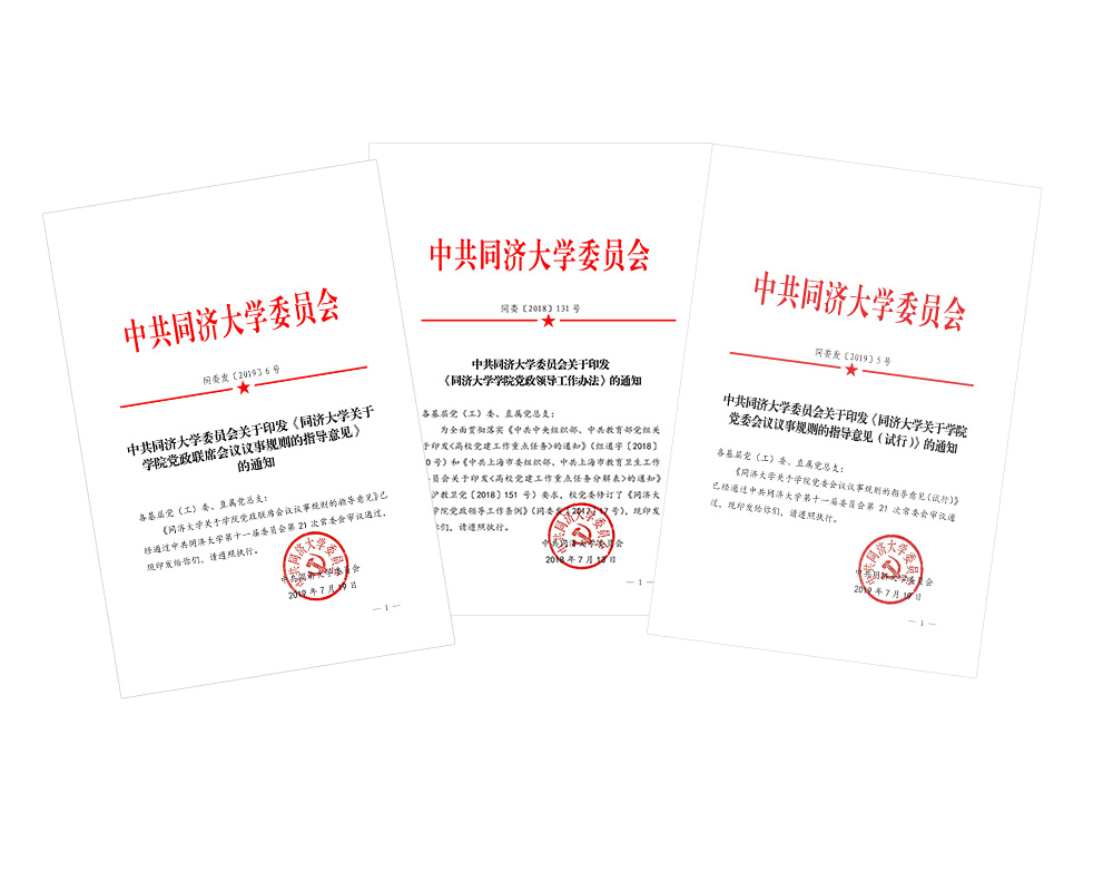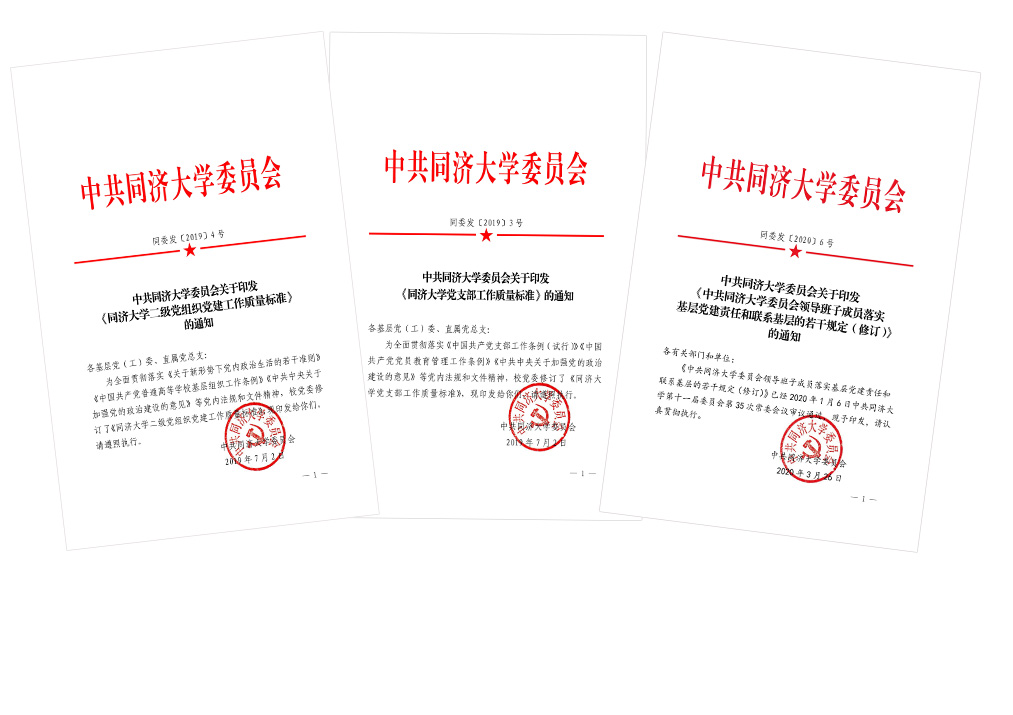 进一步构建工作质量标准,明确各级党建责任。修订完善《中共同济大学委员会领导班子成员落实基层党建责任和联系基层的若干规定》《中共同济大学委员会二级党组织党建工作质量标准》《同济大学党支部工作质量标准》党建工作质量标准三级文件,完善“校—院—党支部”三级党建工作责任制度,按照中央的最新精神进一步推进构建由校党委书记总体负责、分管领导直接负责、班子成员履行“一岗双责”、组织部门牵头抓总、基层党组织具体落实的党建工作职责总体布局。