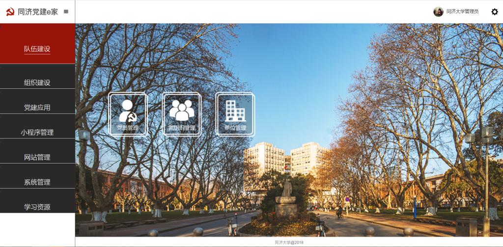 2018年底,同济大学入选首批十所“全国党建工作示范高校”培育创建单位;建筑与城市规划学院党委入选“全国党建工作标杆院系”培育创建单位;附属同济医院门急诊党支部和土木工程学院建筑工程系教工第一党支部入选“全国高校党建工作样板支部”培育创建单位。