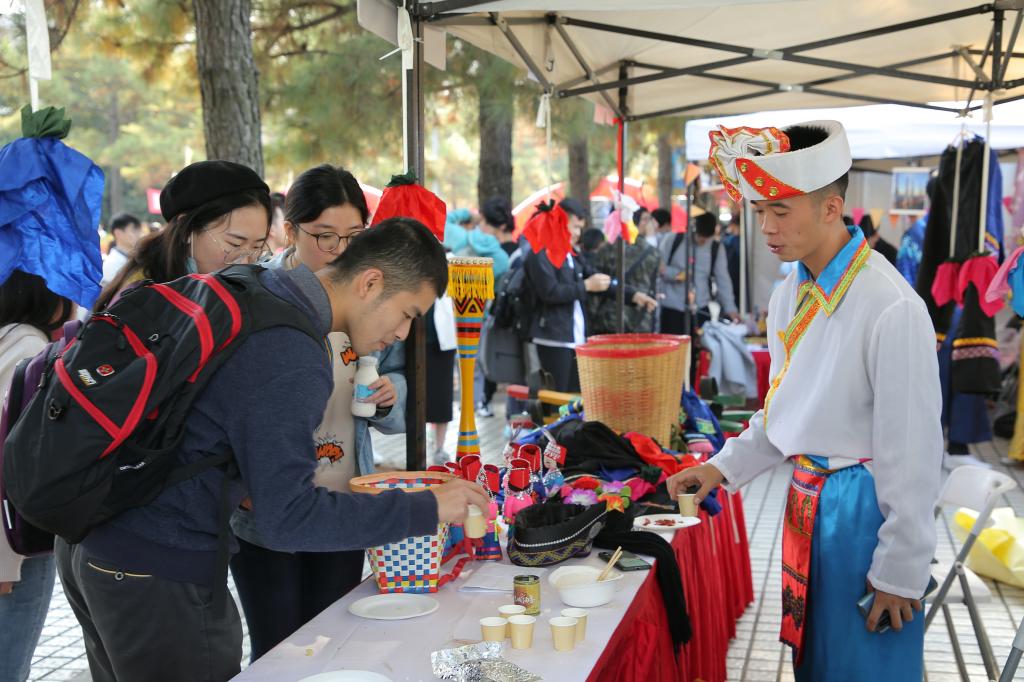 闭幕式分为“文化相聚”“珠歌翠舞”“华夏美食”“游戏互动”“惊喜抽奖”五个板块,以舞龙舞狮表演开场。本次嘉年华共有汉族、壮族、藏族、维吾尔族、哈萨克族、蒙古族、朝鲜族、回族、土家族、满族、苗族、瑶族等17个民族展区,同学们身穿各民族服饰,向游园师生热情介绍自己的民族文化,细致讲解民族知识,生动展示民族精美手工艺品。各展区人头攒动,师生们对各具特色的民族文化赞叹不已。