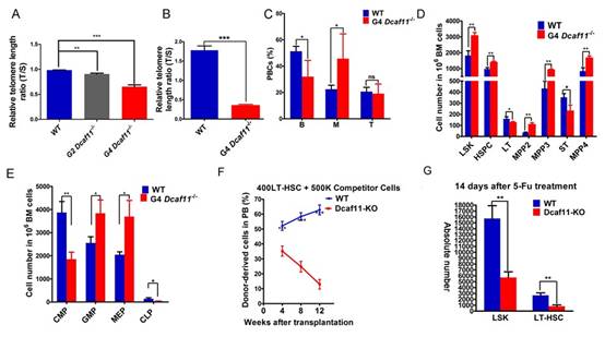 Dcaf11敲除小鼠骨髓造血干细胞造血重建能力和损伤修复能力显著下降