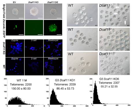Dcaf11对Zscan4激活、胚胎发育以及端粒延长和维持的影响