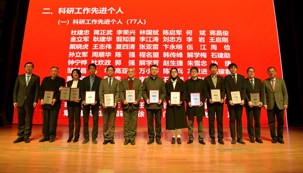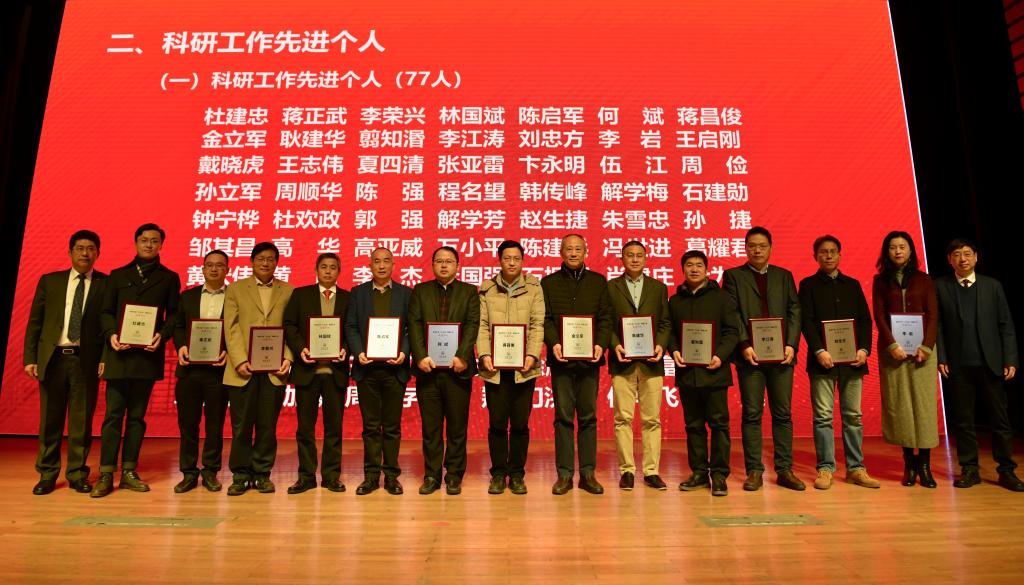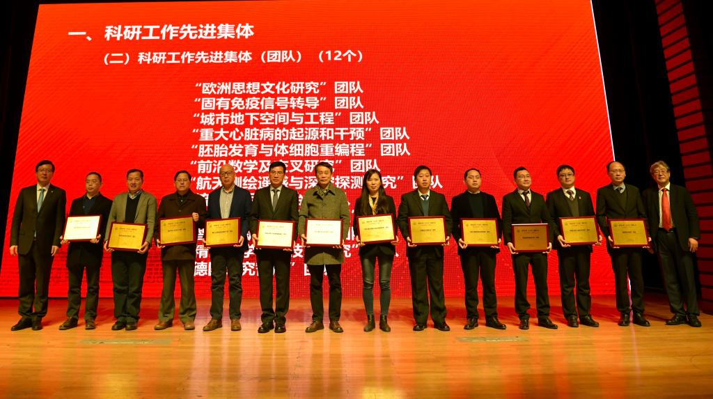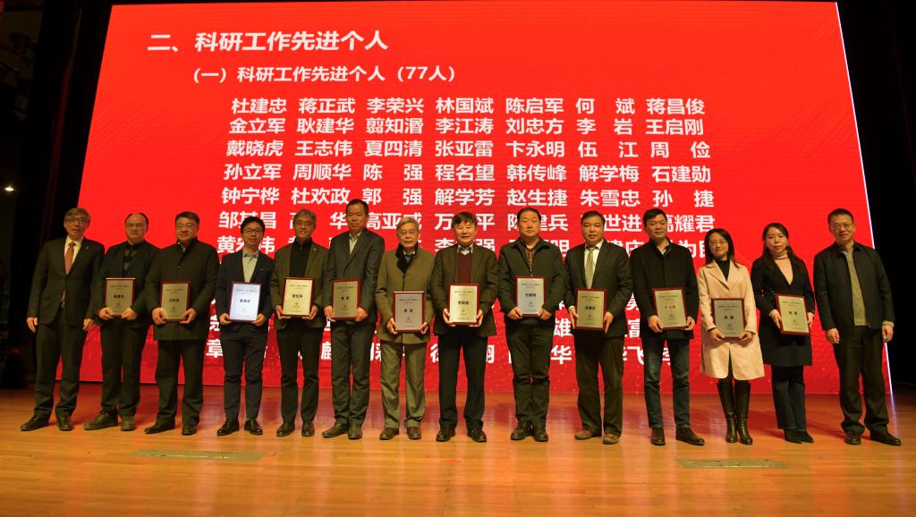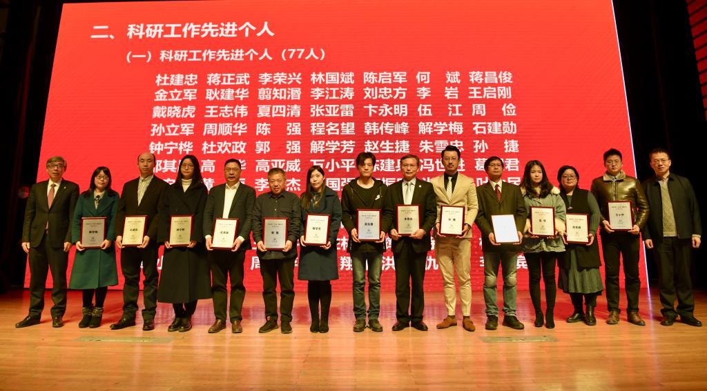 会上,一批在“十三五”科研工作中表现突出的先进集体和先进个人获表彰。土木工程学院等11个学院获“科研工作先进集体(单位)”称号;“欧洲思想文化研究”团队等12个团队获“科研工作先进集体(团队)”称号;万小平等77人获“科研工作先进个人”称号;马杰等13人获“科研管理工作先进个人”称号。校领导为获奖者颁奖。