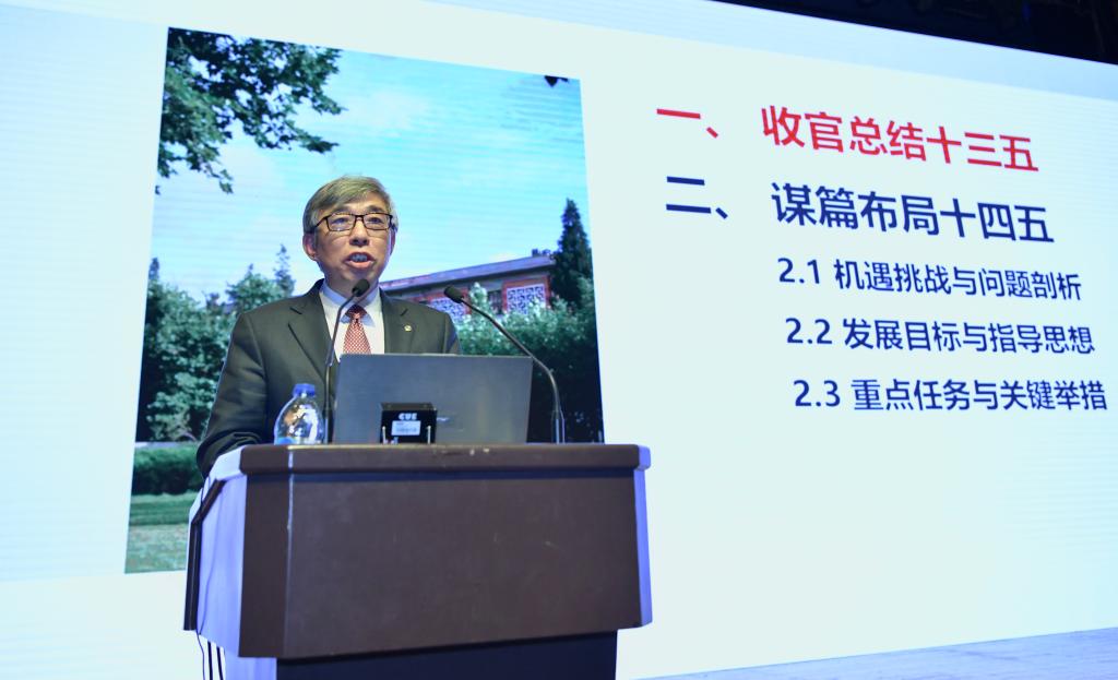 副校长顾祥林作了题为《前瞻布局 深化改革 推动科研工作高质量发展》的报告。他对“十三五”学校科研工作进行了总结,剖析了当前科研工作面临的机遇、挑战和存在的问题,提出了“十四五”科研工作的发展目标与指导思想,介绍了推动“十四五”科研工作高质量发展的重点任务和八大关键举措。面向“十四五”,学校将坚持“四个面向”,以科技创新和高质量发展为核心,推动科技创新能力全面提升,以一流科技创新支撑中国特色世界一流大学建设 。八大举措分别涵盖基础研究能力提升、关键核心技术攻关能力提升、集成创新能力提升、科研基地平台建设、科研人才队伍建设、社会服务能力提升、学术影响力提升及科研体制机制改革8个方面。