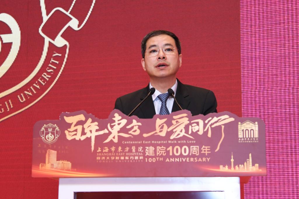上海交通大学附属瑞金医院院长宁光院士代表兄弟医院致辞。他表示,东方医院的发展有独到之处,不少地方值得兄弟医院学习。希望东方医院在新的百年里早日建成国内一流的综合性、研究型的医院,为上海创建一流医学中心城市和有影响力的全球科创中心贡献自身力量。