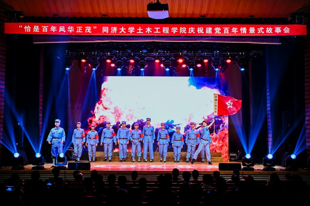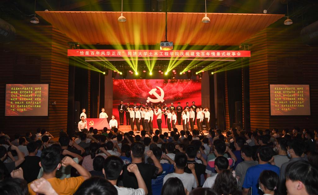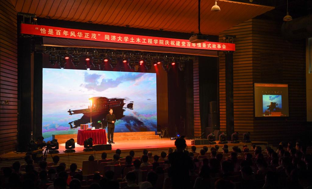 6月8日下午,四平路校区一·二九礼堂内,一曲曲熟悉的经典旋律激情唱响,一个个重大历史性时刻艺术再现,同济大学土木工程学院师生深情演绎庆祝建党百年情景式故事会,回望党的百年光辉历程,抒发砥砺奋进新征程的豪情壮志。土木工程学院师生党员500余人共同沉浸式体验了故事会。这是土木工程学院精心策划、献礼建党百年、推进党史学习教育走深走实的一次重要活动。