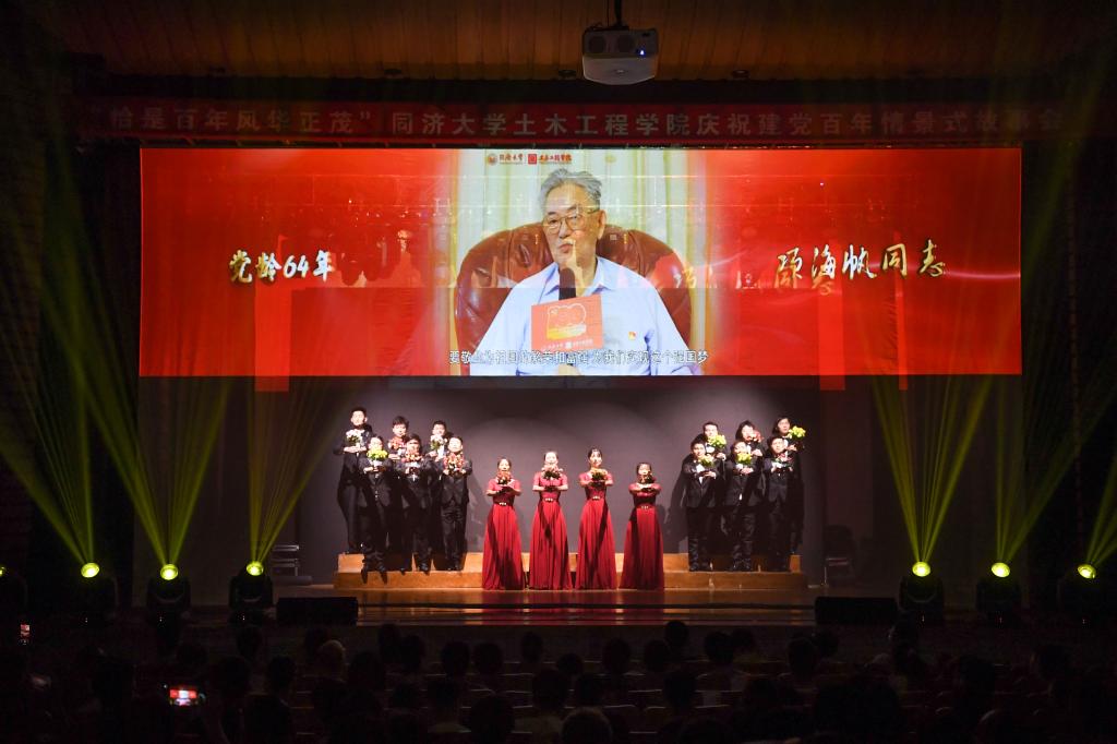 “衷心祝愿我们亲爱的党更加繁荣昌盛!”“要热爱党,热爱祖国,为祖国的繁荣和富强,为实现强国梦奋斗不息!”“始终坚持党员的初心使命,聚焦国家发展战略,把爱党爱国之情融入人才培养和科教兴国的实践中!”……在最后一个篇章“不忘初心”中,现场通过视频播放了以孙钧院士、项海帆院士、吕西林院士为杰出代表的土木工程学院老中青师生党员在建党百年之际的感怀和寄语,表达了他们对党的赤诚之心和奋进不息的坚定决心。
