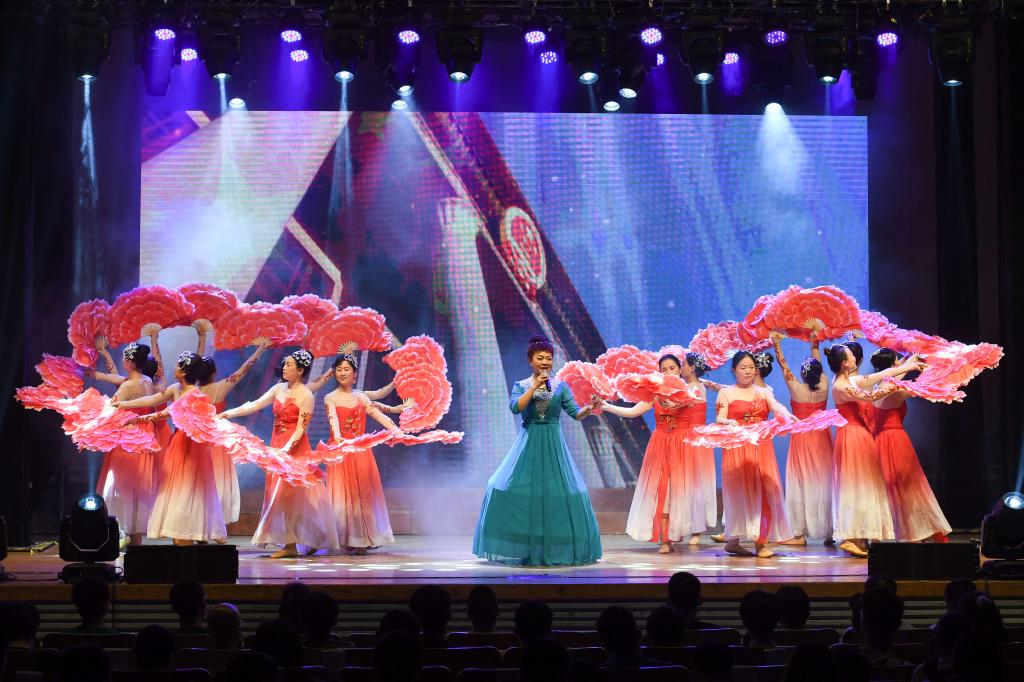 舞台上,配合故事会表演的多媒体背景屏贯穿演出始终,与实景表演相得益彰,带给观者沉浸式体验。在作为舞台幕布的一层白色薄纱帘自如地一收一放之间,情景式表演仿佛实现了时空的跨越。在每个篇章中都贯穿着一首耳熟能详的经典旋律,包括歌舞《长征》、钢琴演奏+诗朗诵《保卫黄河》、独唱《共和国之恋》、歌舞《春天的故事》、舞蹈《我相信》、小提琴演奏+合唱《不忘初心》等。歌声深情,琴声悠扬,舞姿翩跹,富有强烈的艺术感染力,带给观众美的享受和精神感召力。