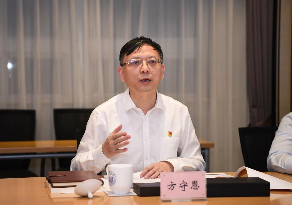 方守恩还向指导组汇报了学校党史学习教育的情况。他表示,党史学习教育启动以来,学校把握高站位、高标准、高质量,以学党史为载体,以悟思想为根本,以办实事为重点,以开新局为目标,教育引导党员干部师生从党史学习中激发信仰、获得启发、汲取力量。学校领导班子以上率下,充分发挥了示范引领带动作用。党委专门组织召开党史学习教育推进会,纪委对基层单位进行专项监督检查,推动党史学习教育走深走实。学校党史学习教育呈现出以下几方面特点和成效:一是坚持以史润心,夯实信仰之基,以浸润感染激发奋斗动力;二是丰富宣讲形式,深化理论阐释,以理论武装感悟思想伟力;三是深挖红色资源、发挥特色优势,以实践体悟增强信仰定力;四是淬炼为民情怀,紧扣师生需求,用心用情办实事解难题;五是围绕立德树人,服务发展大局,奋进“双一流”开拓新局面。下一步,学校将进一步在“学”上求深,深悟创新理论伟力;进一步在“做”上尽力,学史力行知行合一;进一步在“责”上求实,真抓实干勇开新局。