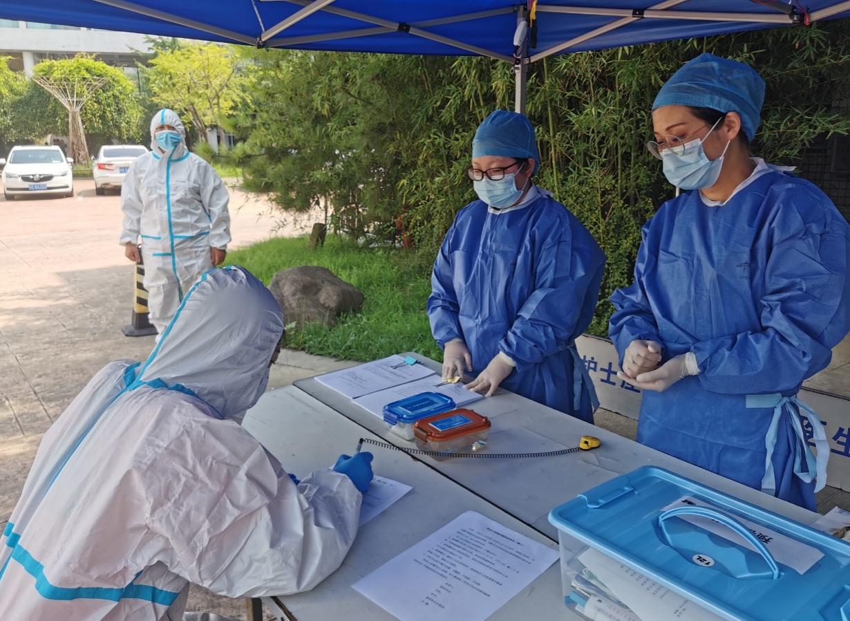 “报告,今天上午校医院接到新华医院来电告知,发现1例新冠病毒核酸检测阳性病例,系我校在校学生,住在四平路校区西南二楼。该生因‘发热咳嗽一天’于8月26日6时前往新华医院发热门诊就诊,9时新冠核酸检测结果为疑似阳性,10时核酸复检结果阳性,确诊。目前新华医院已将该病人隔离治疗。现请求启动我校疫情防控应急方案,请指示。”校医院接报后,演习正式开始。
