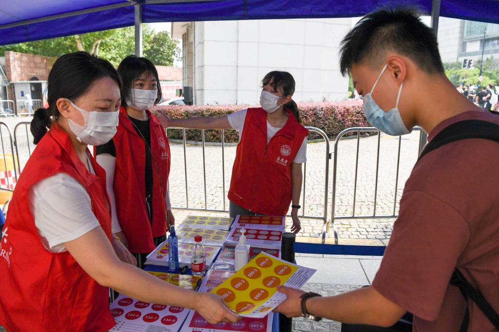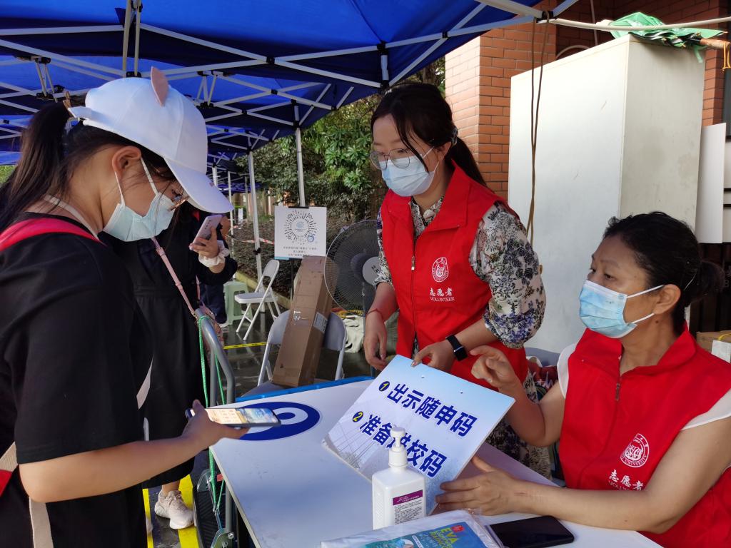 “欢迎新同学,请先填写行李托运单。”“请同学出示随申码、行程码。”“请扫描这个健康云小程序,准备好做核酸检测。”在四平路正门口、在赤峰路18号,在身着红马甲的志愿者一声声亲切的招呼和引导下,一位位新生、老生顺利完成了行李托运、防疫入校流程。这是近日记者在同济大学迎新现场见到的一幕幕生动情景,其中有120余名志愿者是来自校机关各职能部处的老师。