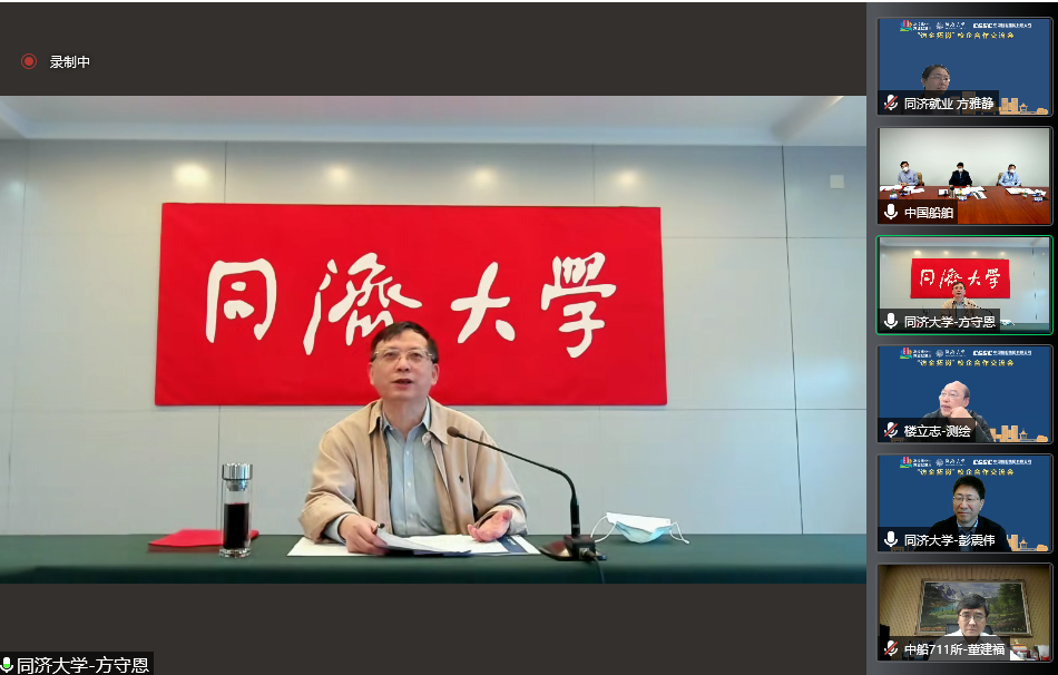 为贯彻落实党中央、国务院关于高校毕业生就业工作的决策部署,进一步开源拓岗,千方百计促进毕业生更加充分更高质量就业,5月12日上午,校党委书记方守恩、校党委副书记彭震伟“云端”走访中国船舶集团有限公司,与中国船舶集团有限公司党组书记、董事杜刚线上交流,双方围绕学生培养、人才输送、校园招聘等进行深入交流。中国船舶集团有限公司第711研究所所长董建福、中国船舶集团有限公司第九设计研究院工程有限公司总经理孙伟军,校学生就业指导中心、土木工程学院、建筑与城市规划学院、测绘与地理信息学院等单位负责人参会。