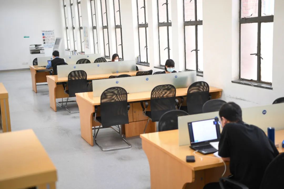 在图书馆,方守恩、陈杰听取关于学生预约入馆、系统选座、环境消杀等情况介绍。一楼阅览室内,10余名学生正间隔分坐在不同区域,或戴着耳塞专心听课,或静心阅读文献,或专注撰写论文。“这里环境好,没有干扰,效率高。”一位博士生说。
