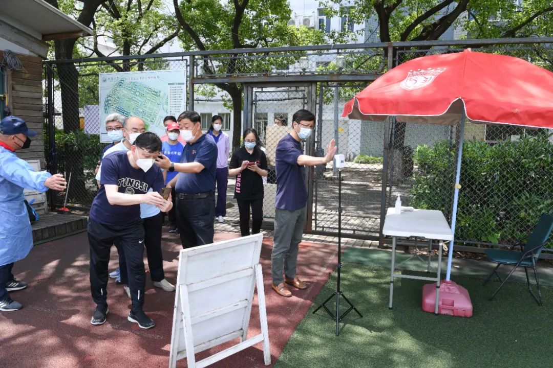 在爱校路足球场,方守恩、陈杰检查“场所码”“同学码”设置情况,了解进入场内开展活动的相关要求。目前开放的室外体育场所,主要供师生们开展健步走、慢跑等个体活动。