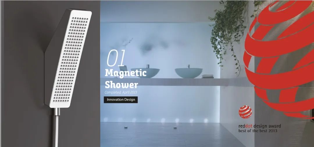 研究生阶段,金小能带领团队设计的卫浴作品《Magnetic Shower》在全世界上万件作品中脱颖而出,获得德国红点概念奖至尊奖。