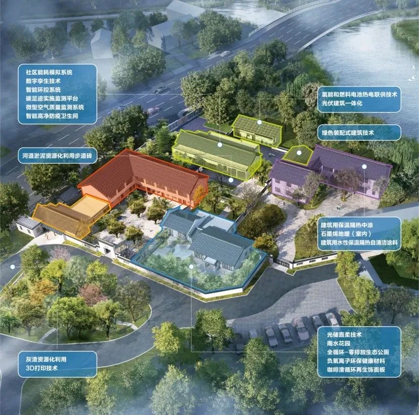 建设长三角可持续发展研究院碳中和技术示范基地。研究院一期基础设施和碳中和技术示范工程位于上海市青浦区金商公路708号,于2021年10月全面落成,将太阳能光伏、光储直柔、环境资源化、环保材料、社区能耗模拟、数字孪生等碳中和技术贯穿其中。今年3月,研究院启动推进二期近零碳建设,将建设在大气、土壤、水、固废、清洁生产能源等领域的学术交流中心,探索组建时空信息数字底座平台建设。